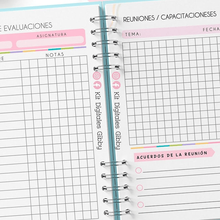 Contiene: Datos personales / Calendario 2025 y 2026 / fechas / objetivos del año / Planificación mensual / planificación semana (2 dias por hoja) / registro reunión de apoderados / registros capacitaciones - reuniones.