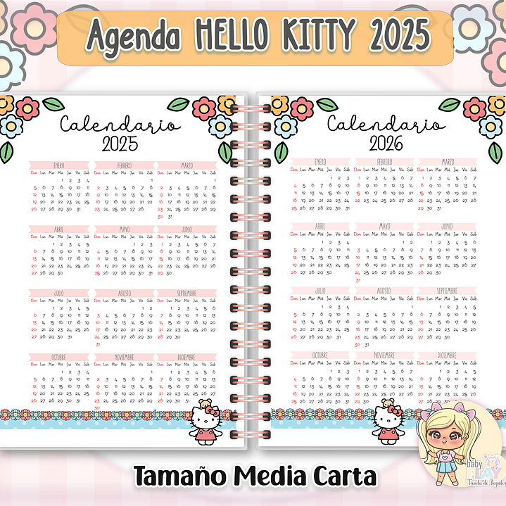 Contiene : Calendario 2025 y 2026 / Datos personales / fechada 1 y 2 dias por pagina / perpetua.
